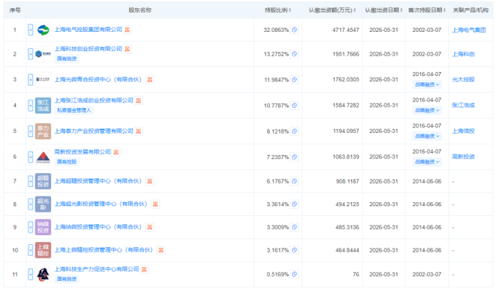 天眼查信息显示,上海微电子的股东包含上海电气控股集团有限公司、上海科技创业投资有限公司、上海光微青合投资中心(有限合伙)、上海张江浩成创业投资有限公司等。其中,上海张江浩成创业投资有限公司由A股公司张江高科(600895,股价42.48元,市值657.88亿元)全资持有。